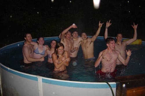 "Das" Barbeque in Hall - mit Pooljump - bei 16 Grad Temperatur - Hall- Mai 2002